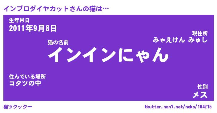 | 可愛いあだ名 | 『イんイん』『インちー』 |