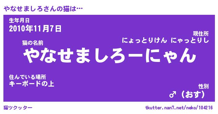 | 生年月日? …「くろねこ」 | 8月01日 10:16 |