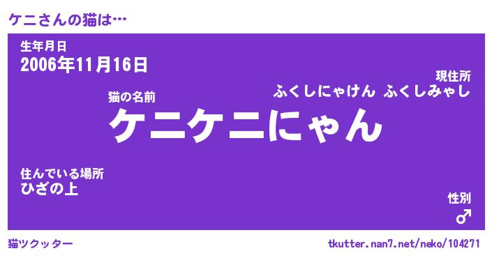 | ポケモン風あだ名 | 『ケニチュウ』『ケニダネ』『ヒケニ』 |