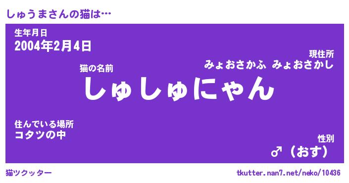 | 意味不明あだ名 | 『ペロリンしゅうま』『永久保存しゅうま』 |