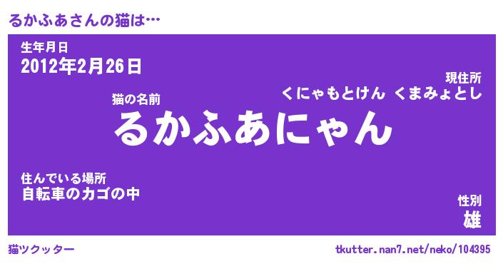 | 意味不明あだ名 | 『ペロリンるかふあ』『永久保存るかふあ』 |