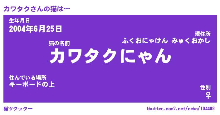 | 生年月日? …「くろねこ」 | 8月01日 10:16 |