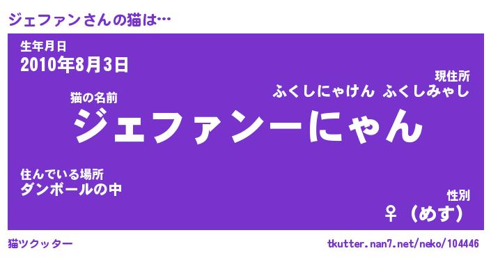 | ポケモン風あだ名 | 『ジェチュウ』『ジェフダネ』 |
