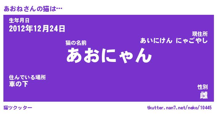 | ポケモン風あだ名 | 『アオチュウ』『アオネダネ』 |