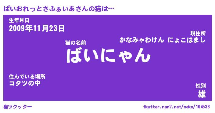 | 生年月日? …「くろねこ」 | 8月01日 10:16 |