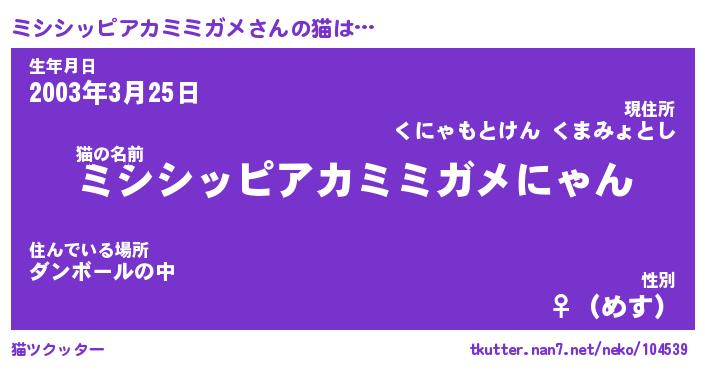 | 肩書あだ名 | 『ミシシッピアカミミガメ御曹司』 |