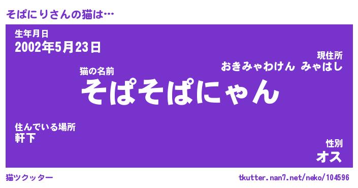 | 生年月日? …「くろねこ」 | 8月01日 10:16 |