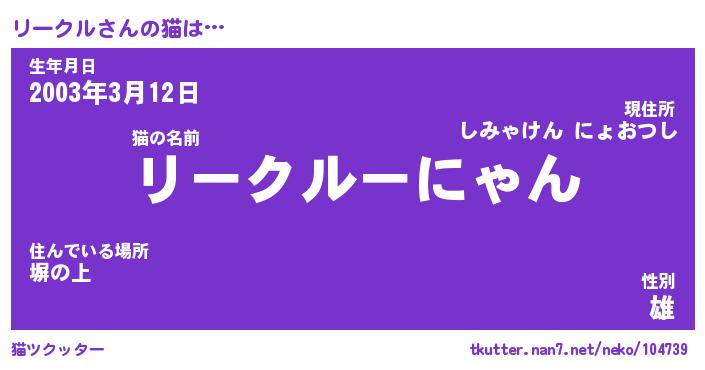 | 生年月日? …「くろねこ」 | 8月01日 10:16 |