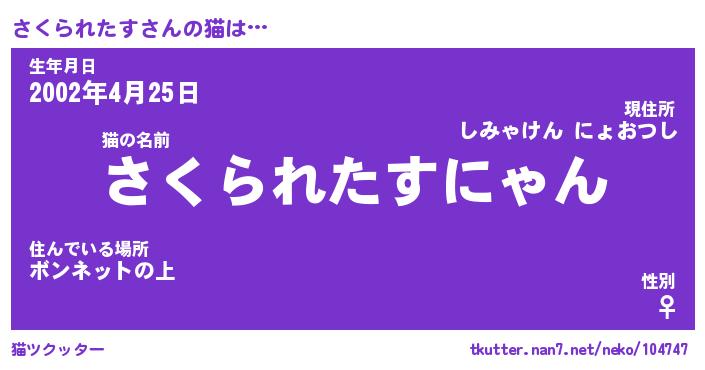 | 生年月日? …「くろねこ」 | 8月01日 10:16 |
