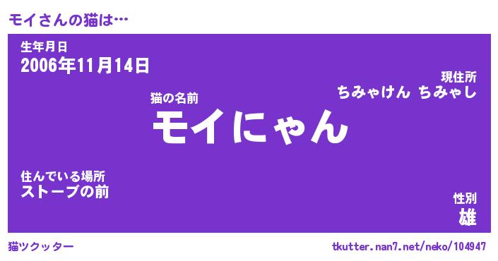 | ポケモン風あだ名 | 『モイチュウ』『モイダネ』『ヒモイ』 |