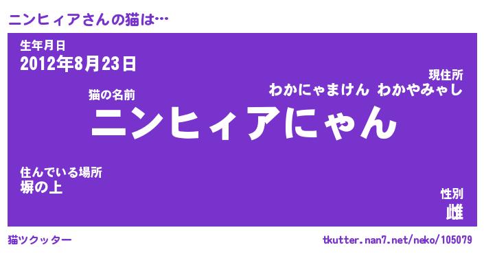 | 男性向けラノベタイトル風あだ名 | 『ニンヒィアの憂鬱』 |