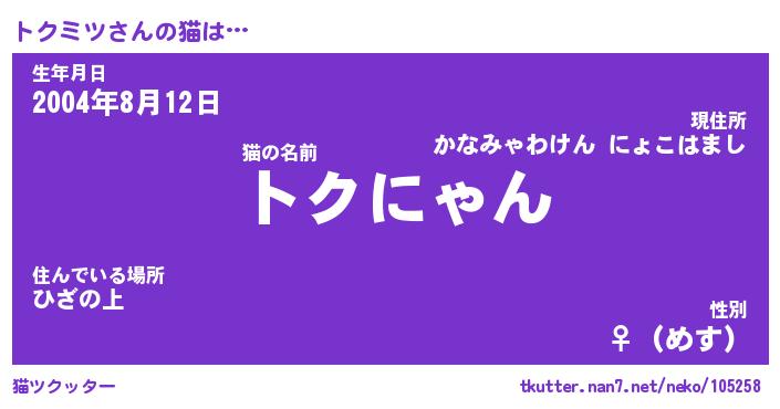 | ポケモン風あだ名 | 『トクチュウ』『トクミダネ』 |