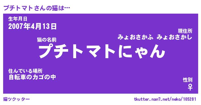 | ファンタジー風あだ名 | 『プチフェル』『エターナルプチトマトー』 |