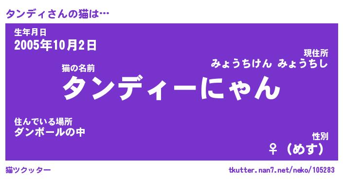 | 意味不明あだ名 | 『ペロリンタンディ』『永久保存タンディ』 |