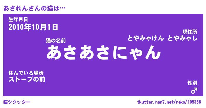 | ポケモン風あだ名 | 『アサチュウ』『アサレダネ』 |