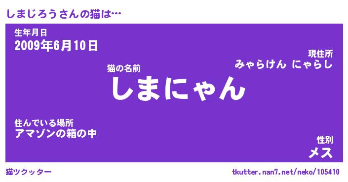 | ファンタジー風あだ名 | 『シマフェル』『エターナルシマジロウー』 |