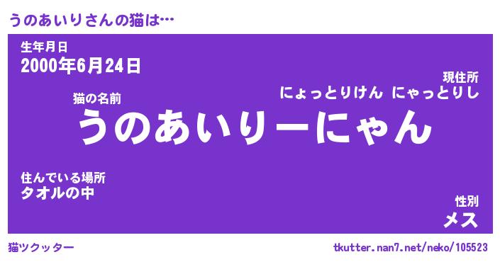| ツイッター | うのあいりさんのツイッターID『namakemono_nyan』 |