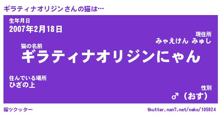 | 男性向けラノベタイトル風あだ名 | 『ギラティナオリジンの憂鬱』 |