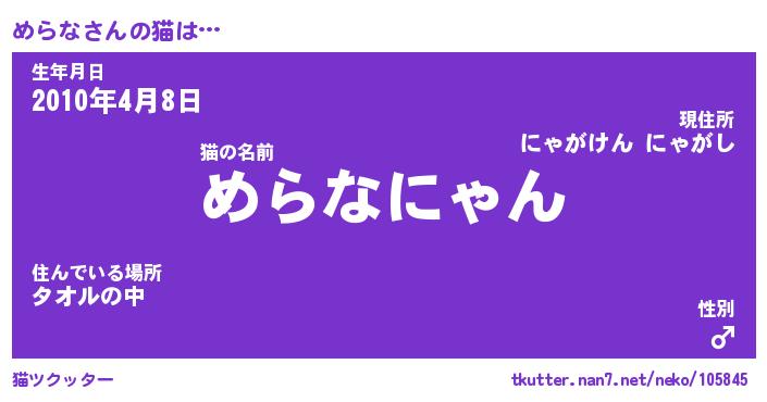 | 意味不明あだ名 | 『ペロリンめらな』『めらなフォーエバー』 |