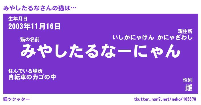 | 肩書あだ名 | 『みやしたるな社長』『みやしたるな助手』 |