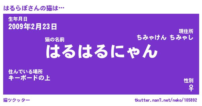 | ポケモン風あだ名 | 『ハルチュウ』『ハルラダネ』 |