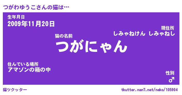 | ポケモン風あだ名 | 『ツガチュウ』『ツガワダネ』 |