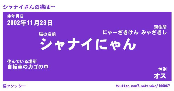 | ポケモン風あだ名 | 『シャチュウ』『シャナダネ』 |