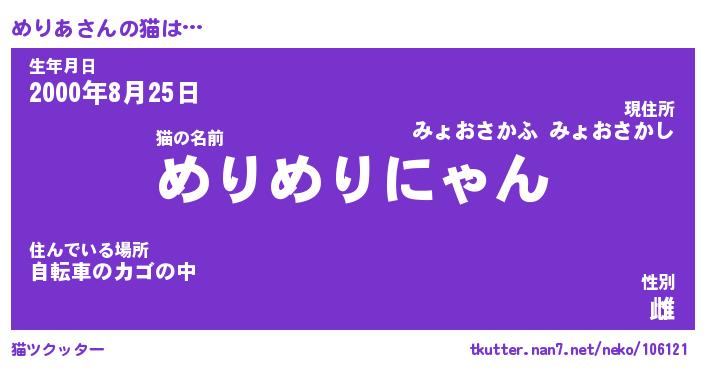 | 意味不明あだ名 | 『ペロリンめりあ』『めりあフォーエバー』 |