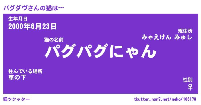 | 自動車の名前っぽいあだ名 | 『パグティマ』『パクア』『パント』 |