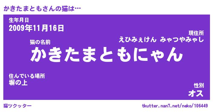| 男性向けラノベタイトル風あだ名 | 『かきたまともの憂鬱』 |