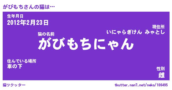 | 男性向けラノベタイトル風あだ名 | 『がびもちの憂鬱』 |