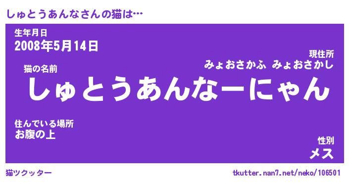 | 2回繰り返すあだ名 | 『しゅしゅ』『ししゅゅ』『ぬらぬら』 |