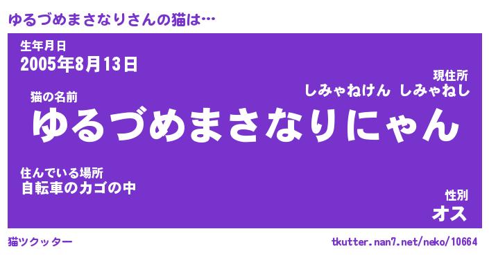 | 男性向けラノベタイトル風あだ名 | 『ゆるづめまさなりの憂鬱』 |
