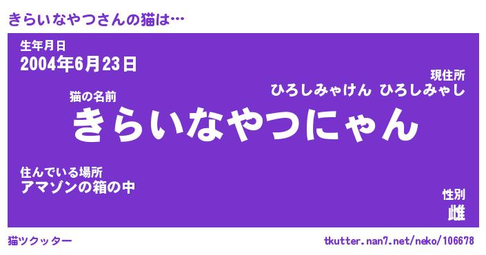 | 生年月日? …「くろねこ」 | 8月01日 10:16 |
