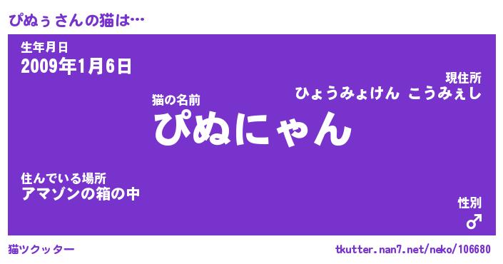 | 男性向けラノベタイトル風あだ名 | 『ぴぬぅの憂鬱』 |