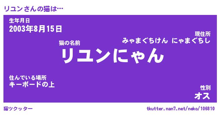 | 意味不明あだ名 | 『ペロリンリユン』『リユンフォーエバー』 |