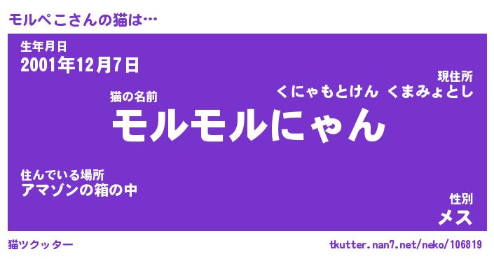 | 2回繰り返すあだ名 | 『モルモル』『モモルル』『ぬるぬる』 |