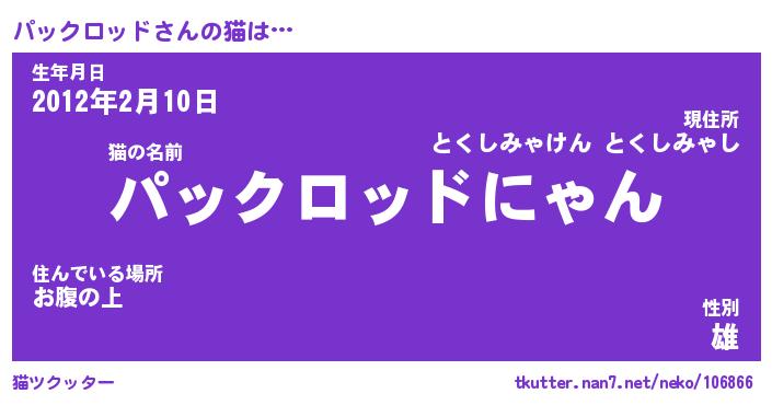 | 女子向けラノベタイトル風あだ名 | 『(仮)パックロッドのやんごとなき事情』 |