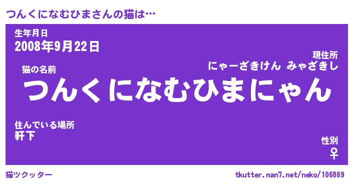 | 男性向けラノベタイトル風あだ名 | 『つんくになむひまの憂鬱』 |