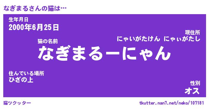 | 意味不明あだ名 | 『ペロリンなぎまる』『永久保存なぎまる』 |