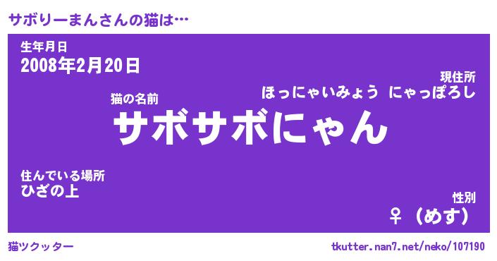 | 2回繰り返すあだ名 | 『サボサボ』『ササボボ』『ぬめぬめ』 |