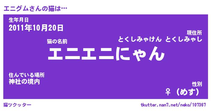 | 意味不明あだ名 | 『ペロリンエニグム』『永久保存エニグム』 |