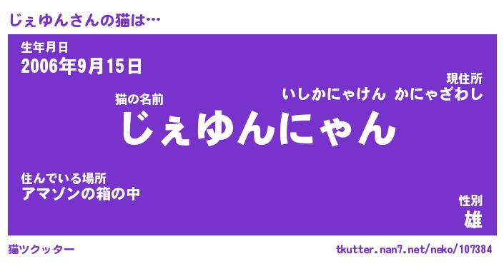 | 男性向けラノベタイトル風あだ名 | 『じぇゆんの憂鬱』 |
