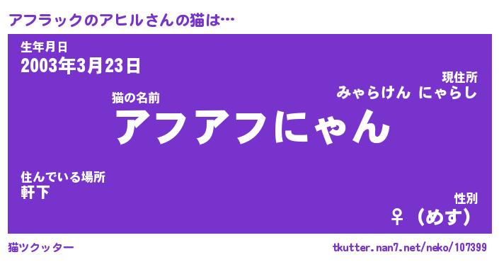 | ポケモン風あだ名 | 『アフチュウ』『アフラダネ』 |