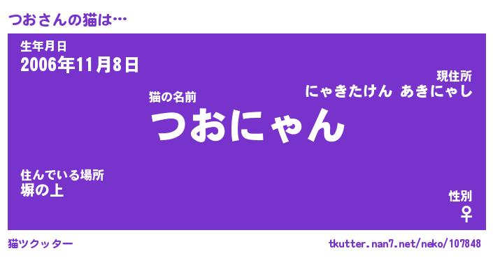 | ポケモン風あだ名 | 『ツオチュウ』『ツオダネ』『ヒツオ』 |