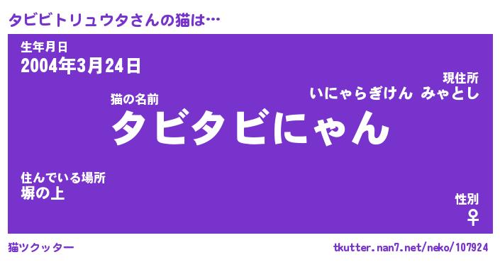 | ポケモン風あだ名 | 『タビチュウ』『タビビダネ』 |