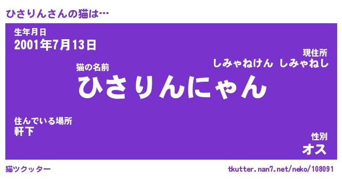 | 生年月日? …「くろねこ」 | 8月01日 10:16 |
