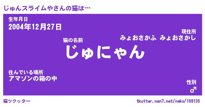 | 男性向けラノベタイトル風あだ名 | 『じゅんスライムやの憂鬱』 |