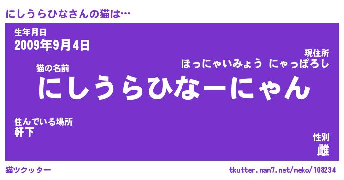 | ツイッター | にしうらひなさんのツイッターID『neet_star』 |