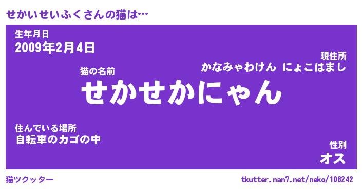 | ポケモン風あだ名 | 『セカチュウ』『セカイダネ』 |